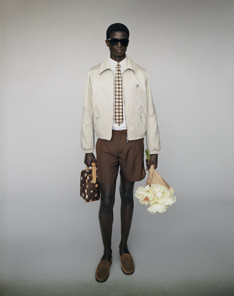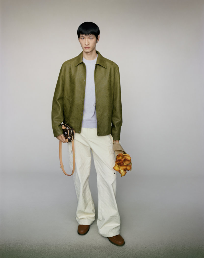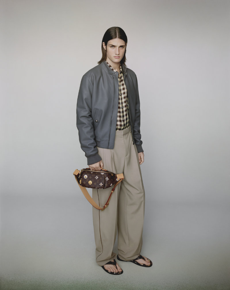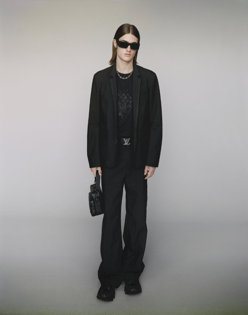 Formal wear is made adaptable, intended to bring distinction to various occasions. The collection integrates the house’s heritage with seasonal joy through specific innovations. Flaps on garments are adorned with the distinctive VVN leather tabs found on Louis Vuitton bags.