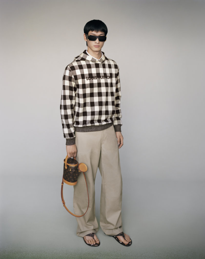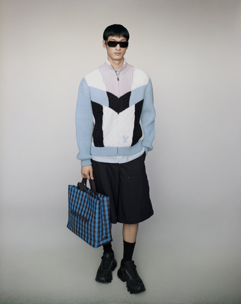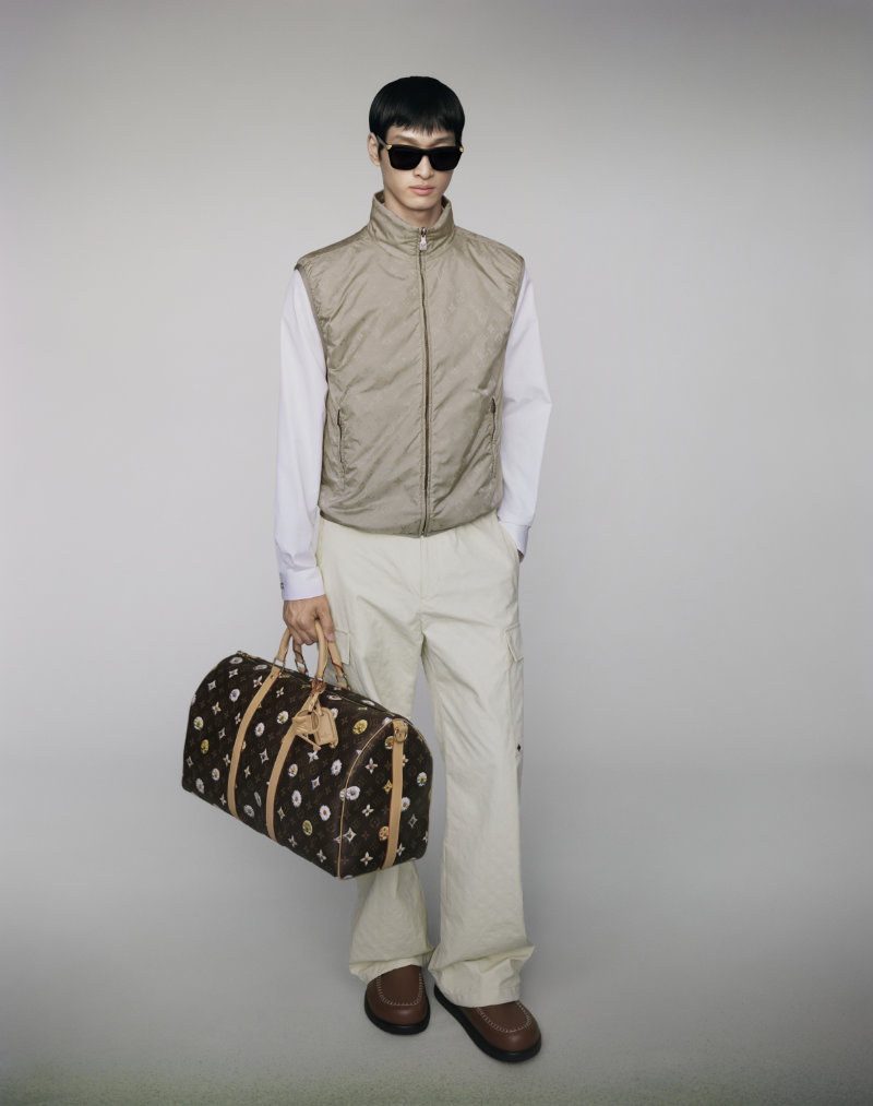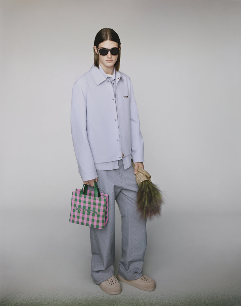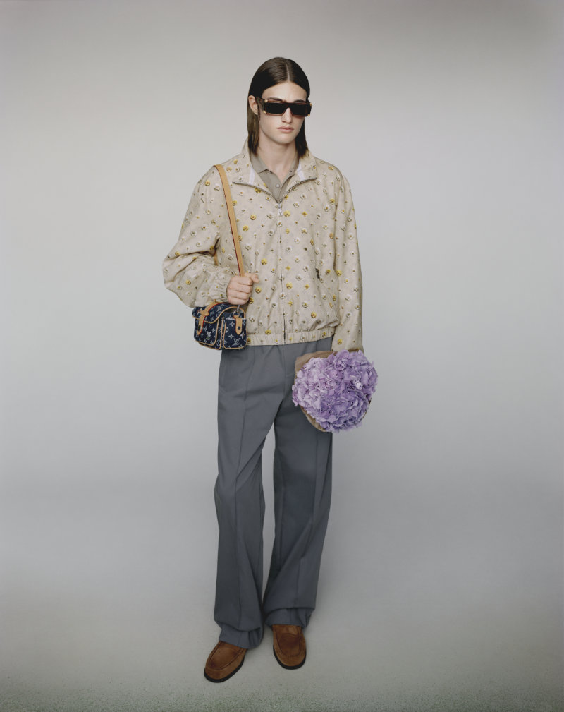 Formal wear is made adaptable, intended to bring distinction to various occasions. The collection integrates the house’s heritage with seasonal joy through specific innovations. Flaps on garments are adorned with the distinctive VVN leather tabs found on Louis Vuitton bags.
