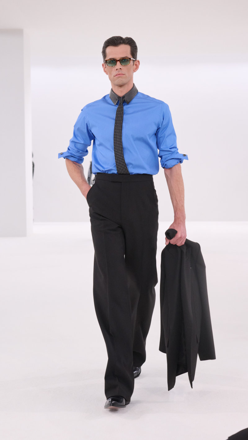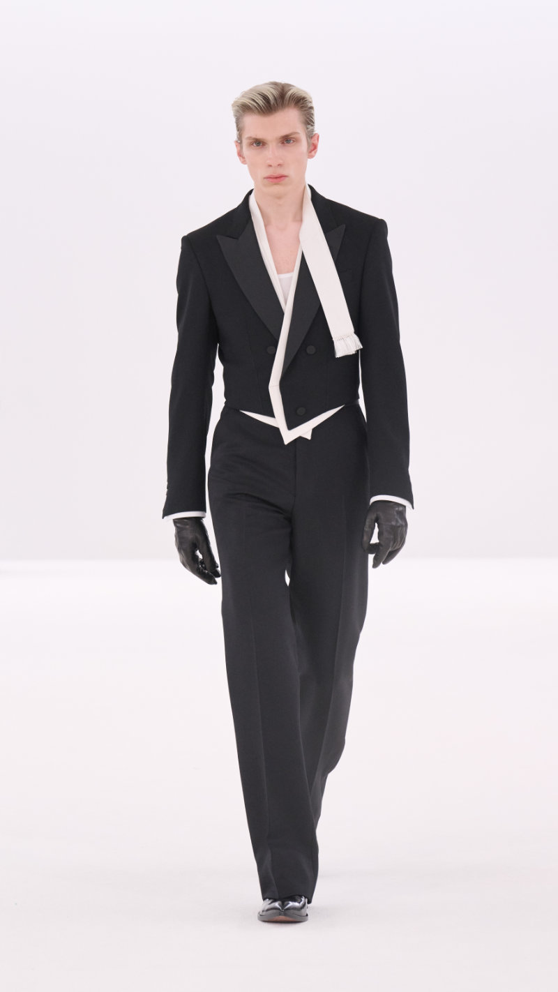 One year on, we are starting to see a newly proposed Tom Ford man, one who is less overtly macho and more ambiguous. Traditional symbols of masculine authority are still intact, but worn with a loosened tie and a knowing smirk, which we can easily see resonate with the newgen. Overall, the recurring theme of this fashion week has centered around power. Ackermann’s suits suggested power and vulnerability at once.